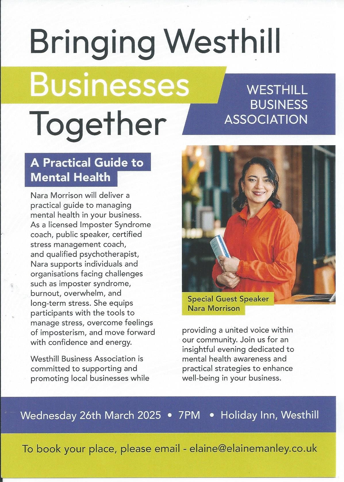 Next meeting of Westhill Business Association 26th March ImageMarch 15, 2025Administrator Share this: Click to share on X (Opens in new window) X Click to share on Facebook (Opens in new window) Facebook Related